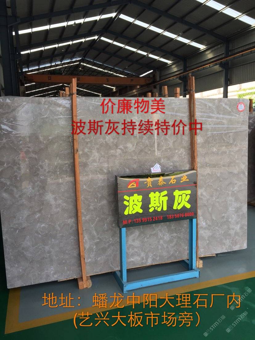 特別推薦(波斯灰)天然大理石,色調(diào)柔和雅致,華貴大方,古典美與皇室風(fēng)范,波斯灰拋光后晶瑩剔透,又具流暢自然的石肌紋理,它不同于一般的灰色大理石表面沒(méi)有光度感結(jié)構(gòu),其結(jié)構(gòu)色彩豐富,色澤清潤(rùn)細(xì)膩,光彩迷人映射出它典雅的品質(zhì)。適合高品質(zhì)建筑的裝潢使用,由于放射性低,在室內(nèi)家修也廣受歡迎,可以用于墻面、桌面、地板、臥室、廚房、浴室等。該石材質(zhì)地柔潤(rùn)細(xì)膩,便于精細(xì)加工,因此在工藝品雕塑界備受贊許。波斯灰--您值得擁有!