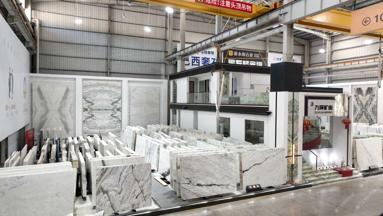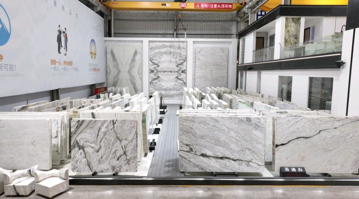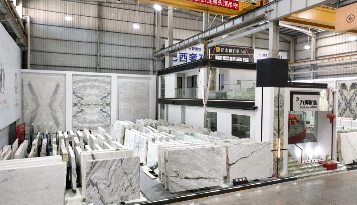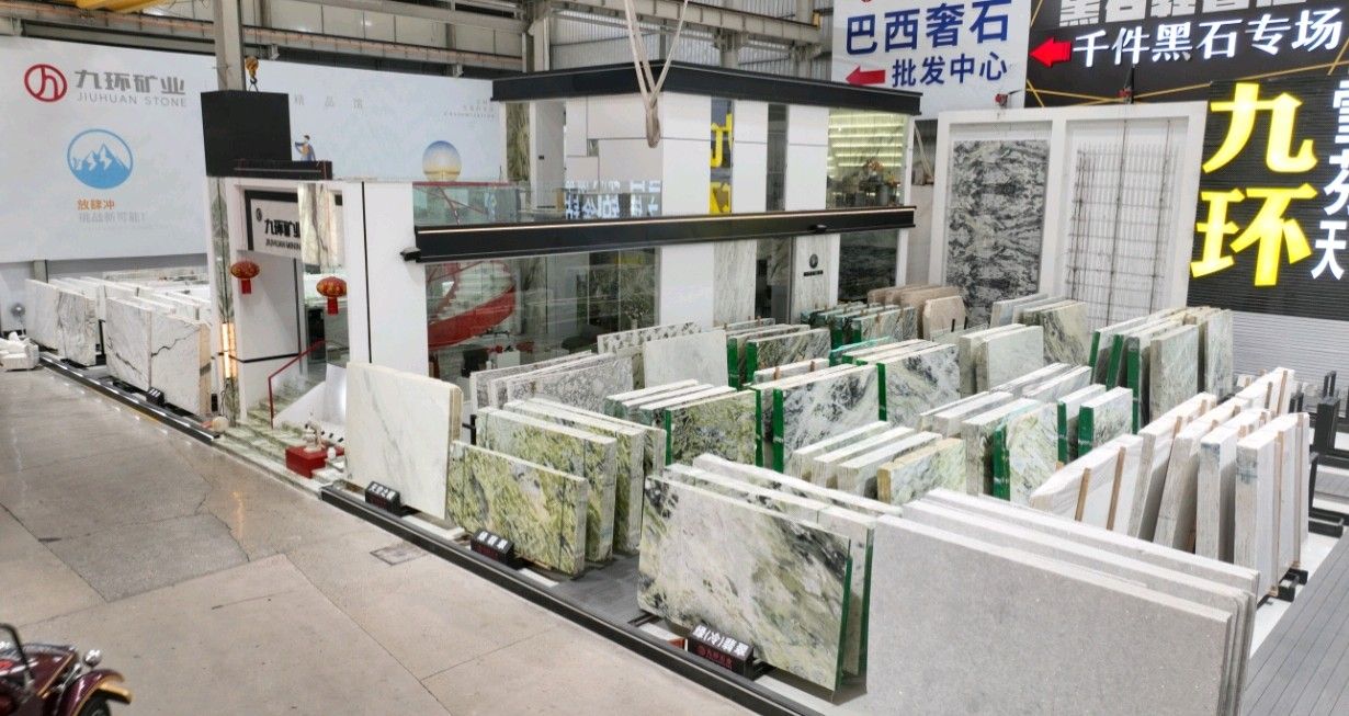 公司創(chuàng)建初期駐點于東升大板市場,隨著市場需求,不斷進(jìn)行戰(zhàn)略布局,2016年駐點高時大板市場,2017年駐點藝興大板市場,同時期增加澳磊門店,2018年,九環(huán)增加遠(yuǎn)達(dá)專場,擁有數(shù)百個架子位,憑借優(yōu)質(zhì)服務(wù)深受客戶認(rèn)可與信賴。2019年,九環(huán)于順盛增加加工點,主要生產(chǎn)“水晶木紋”,年產(chǎn)量達(dá)15萬平方米。該年底順勢而上,增加均利廠、新寰宇廠及振南廠三個石材加工廠,并不斷拓寬市場品類,由原先單一的“水晶木紋”,又增拓“印度藍(lán)金沙”與“土耳其星月白”兩個大理石品種,年產(chǎn)量接近30萬平方米,公司經(jīng)營得到進(jìn)一步優(yōu)化。2020年九環(huán)石業(yè)進(jìn)軍南翼點,新增“卡索灰”及“古堡藍(lán)”兩個大理石品種,擁有自己的大型礦山開采權(quán),自主開采銷售,產(chǎn)品種類大幅度增加,業(yè)務(wù)領(lǐng)域進(jìn)一步拓展。2021年至今,九環(huán)石業(yè)新增澳盛點,新增品種“卡地亞灰”包礦。至此,九環(huán)石業(yè)在“世界石都”水頭戰(zhàn)略版圖囊括了澳盛、新寰宇、東升、遠(yuǎn)達(dá)等駐點,具備良好的區(qū)位優(yōu)勢,發(fā)揮著重要的協(xié)同效應(yīng)。\