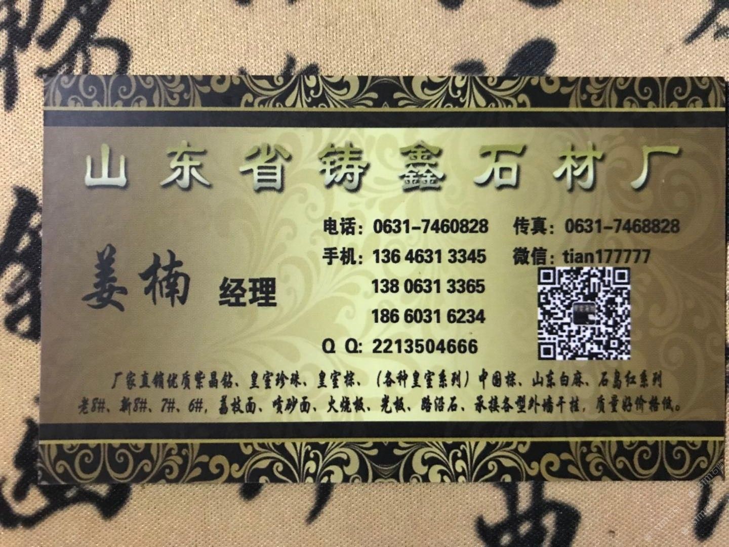 中國山東威海您好我是山東省榮成市石島紅產地鑄鑫石材有限公司公司成立于1992年主要經營:石島紅老8#新8#7#6#皇室系列紫晶鉆白麻榮成灰等優(yōu)質產品,A級荒料火燒板光板荔枝面復古