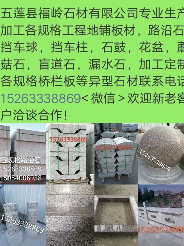 專業(yè)生產(chǎn)加工五蓮紅,五蓮花各規(guī)格工程板,路沿石,擋車球,擋車柱等異型石材,聯(lián)系電話15263338869歡迎各界朋友洽談合作!
