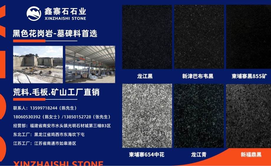 經(jīng)營(yíng)范圍:龍江黑、龍江青,柬埔寨黑855礦,柬埔寨654,新津巴布韋黑荒料,毛條板,規(guī)格板,承接石材外貿(mào)