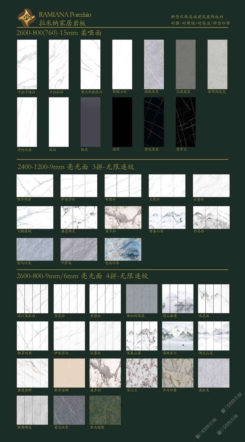 拉米納家居巖板(RAMIANA Porcelain),硬度堪比石英石,亮度高,抗污、耐熱、防刮、耐用、易清潔。