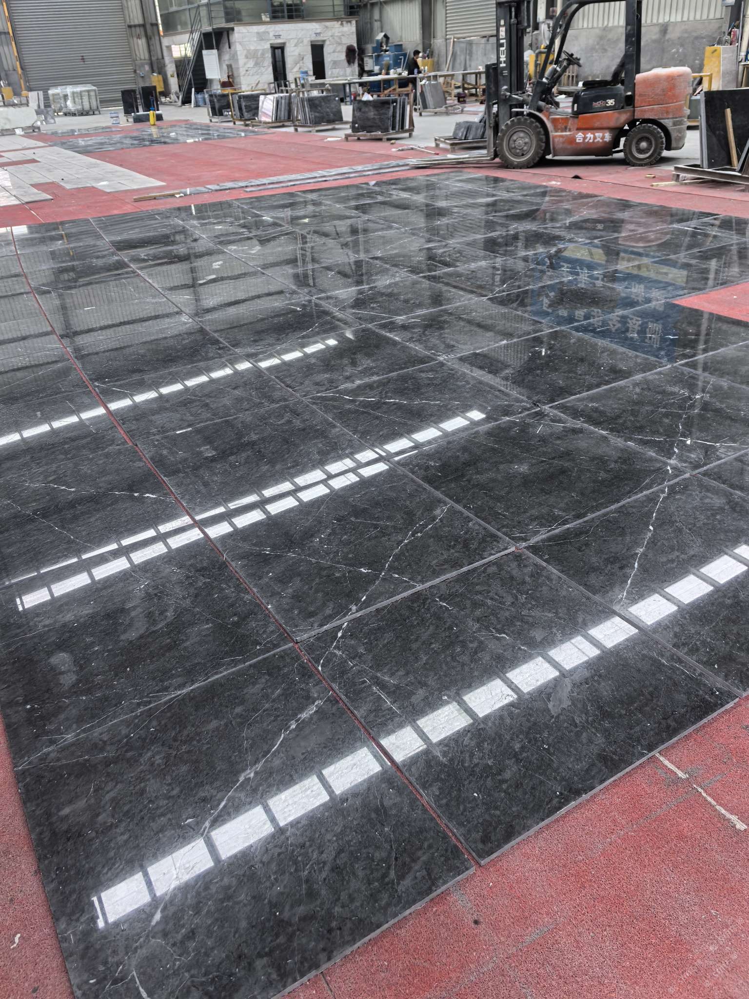 工廠(chǎng)位于在南安水頭鎮(zhèn),占地3萬(wàn)平方米,工業(yè)廠(chǎng)房建筑面積2萬(wàn)平方米。分設(shè)拉鋸、補(bǔ)膠、磨拋、介板、板材打磨、工藝、 工藝打磨等車(chē)間,擁有先進(jìn)的石材加工設(shè)備80多臺(tái)(套),每年可生產(chǎn)大理石大板60萬(wàn)平方米、工程板15萬(wàn)平方米、弧板3000平方米及各類(lèi)花線(xiàn)5000米。