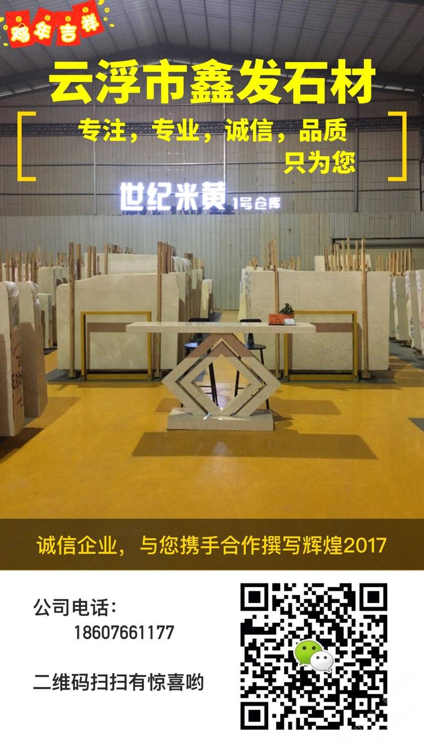 云浮市鑫發(fā)石材,是云浮地區(qū)一家世紀(jì)米黃專(zhuān)場(chǎng)。旗下有華盛達(dá)石材,鑫發(fā)石材工廠,石在經(jīng)營(yíng),實(shí)在服務(wù)。以誠(chéng)信為本,品質(zhì)服務(wù)為中心,竭誠(chéng)為您的滿意不懈追求。