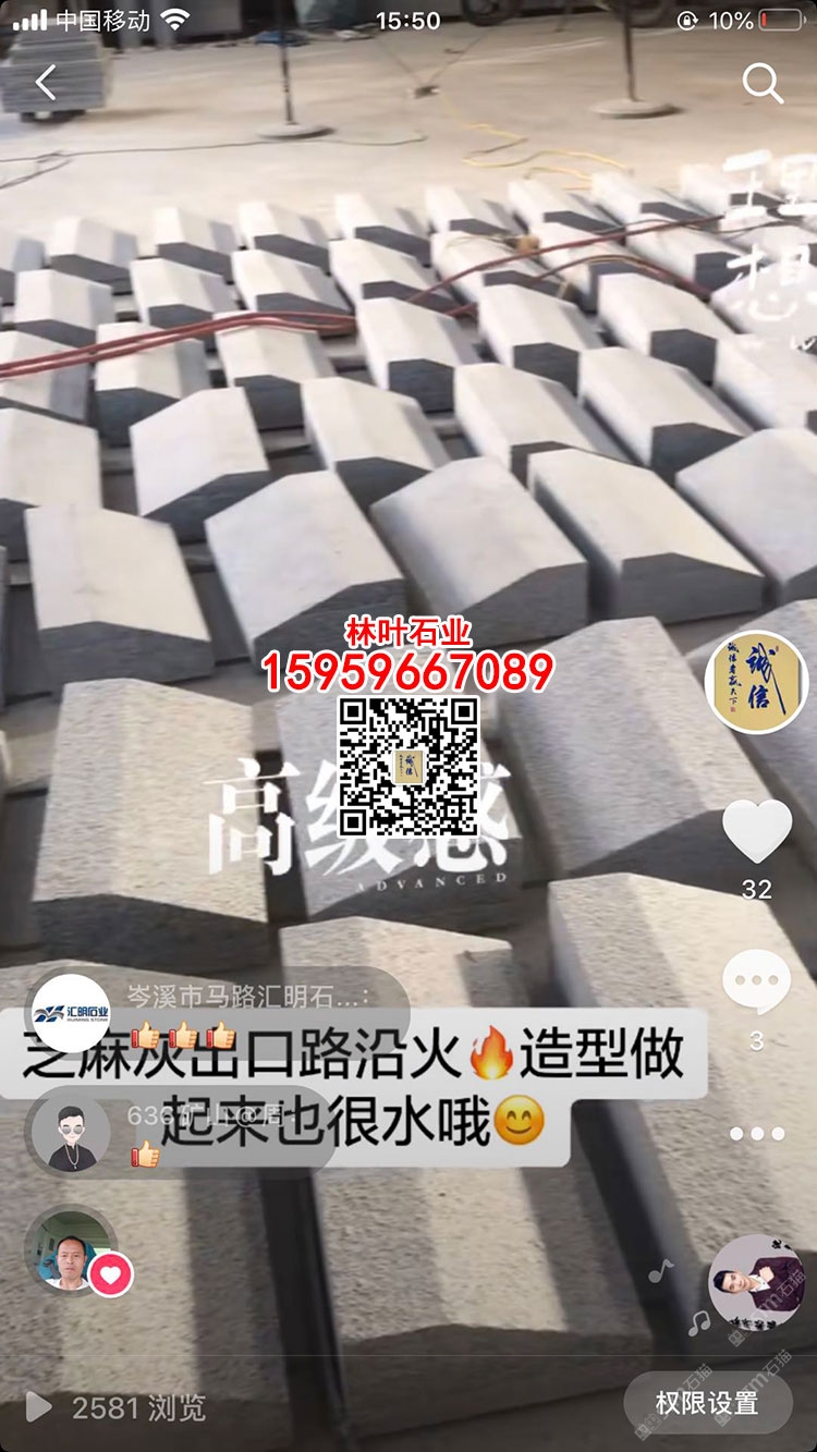 發(fā)布信息: 林葉石業(yè)長(zhǎng)泰工廠(林總15959667089微信同號(hào))專業(yè)老礦芝麻黑與芝麻灰供應(yīng)商,專注于出口及高品質(zhì)工程國(guó)內(nèi)外園林景觀石材;主營(yíng):老礦芝麻黑墓碑石、正礦吳田山G654窗臺(tái)板、G654芝麻黑牛鼻子、芝麻黑石材游泳池蓋板、老礦芝麻黑出口高品質(zhì)工程板、老礦654小方塊馬蹄石、芝麻灰G655路沿石、深灰麻石材、中灰麻石材、深灰色花崗巖、黑色麻石等光面、燒面、荔枝面、墓碑石材、地鋪石材、園林景觀工程、路沿石材等;林葉石業(yè)寧德工廠(葉總18050650127微信同號(hào))專業(yè)新礦芝麻黑寧德小藍(lán)寶,廠礦一體,體格優(yōu)惠,真誠(chéng)希望您的光臨與合作?。暶魃蟼鳟a(chǎn)品圖片均是本廠加工生產(chǎn))
