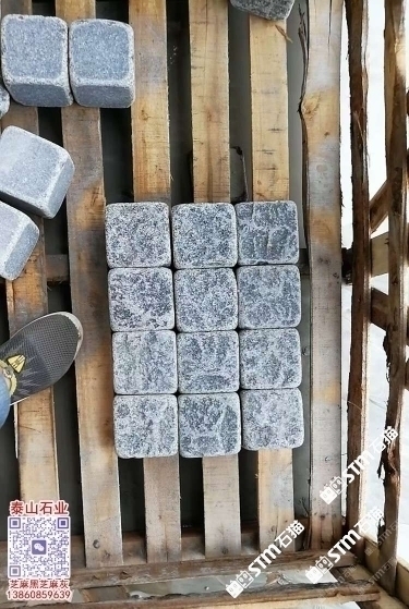 新老礦G654芝麻黑滾磨石滾筒石自然面小方塊馬蹄石