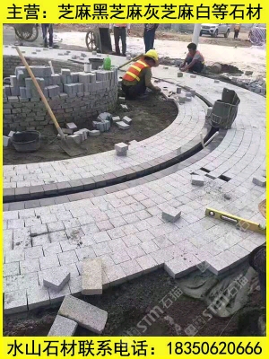 芝麻黑芝麻灰黃銹石燒面花崗巖 廣場地鋪工程案例