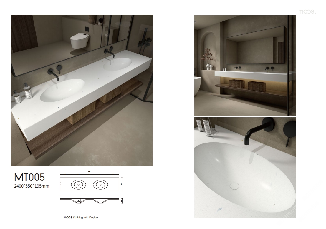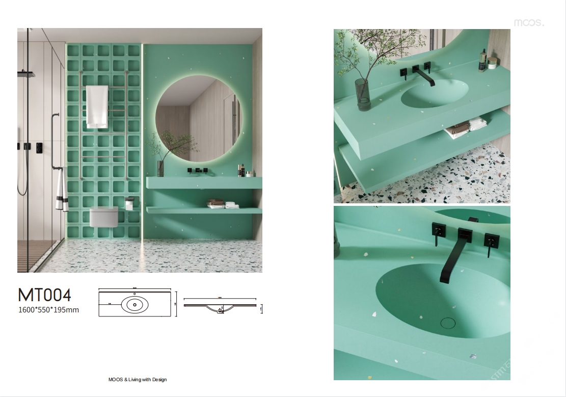 「MOOS魔石衛(wèi)浴」無機水磨石一體化臺盆設計