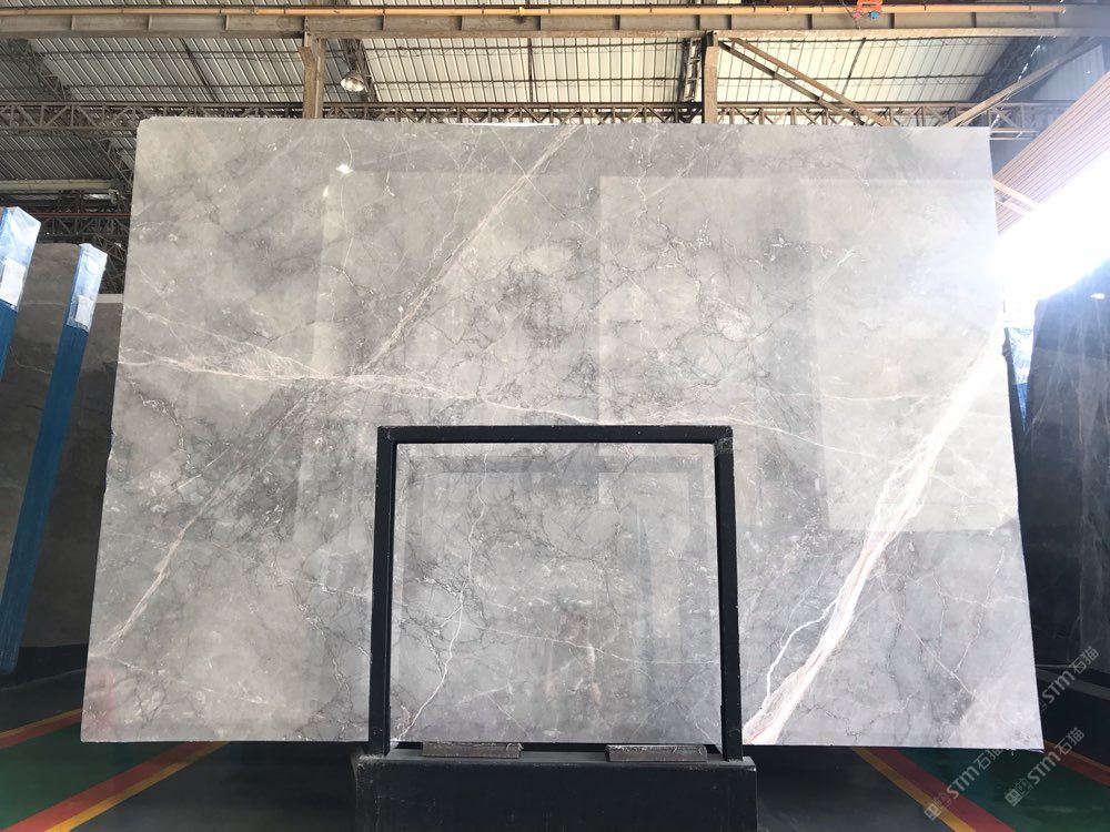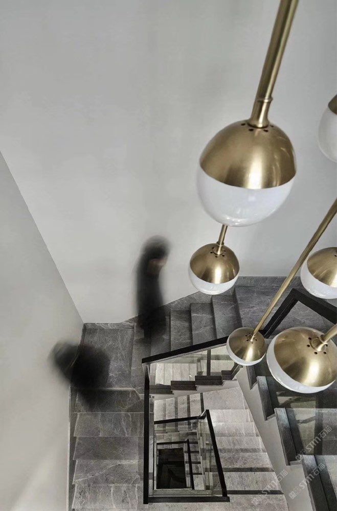 索菲亞灰是一款灰底色白紋、偶爾帶紅根的石材,或淺或深的灰色底紋自由分布其上,于無序中構(gòu)建出有序的層次感與空間感,讓原本平靜如潮水的板面有了生動的變化,白色的紋路橫亙其上,更是盡顯張力。