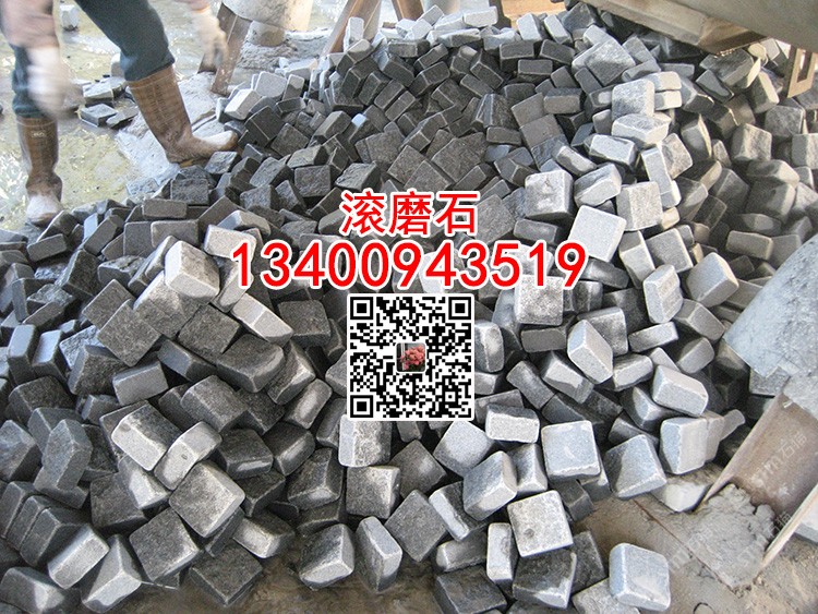 芝麻黑滾磨石芝麻灰G655自然面馬蹄石小方塊滾筒石