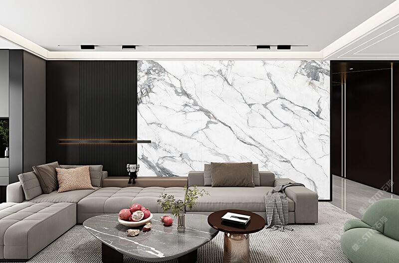 唐馳定制大花白巖板背景墻