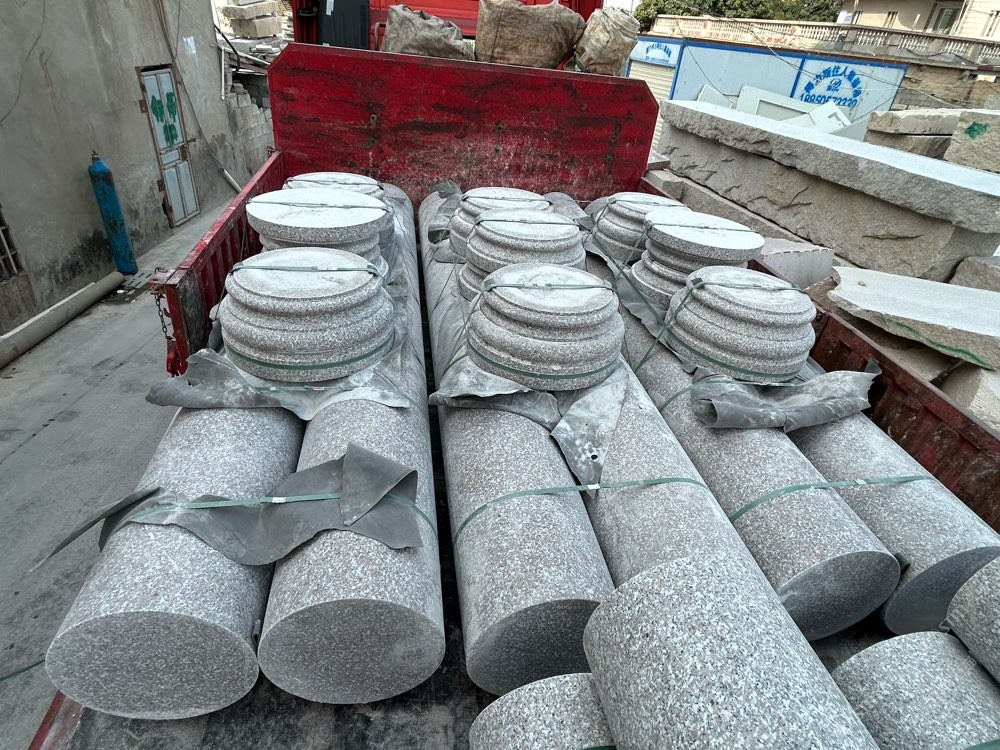 花崗巖圓柱柱腳柱帽鉆孔加工成品