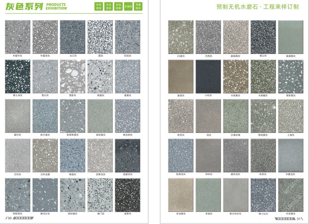 發(fā)布信息: #阿斯頓水磨石 新版畫冊預告,喜歡嗎 純無機水磨石,專業(yè),品質保證! ① 無樹脂、天然花色 ② 可定制任意款式(設計/尺寸) ③ 來板仿樣2~3天完成 ④ 生產、銷售、加工一體化
