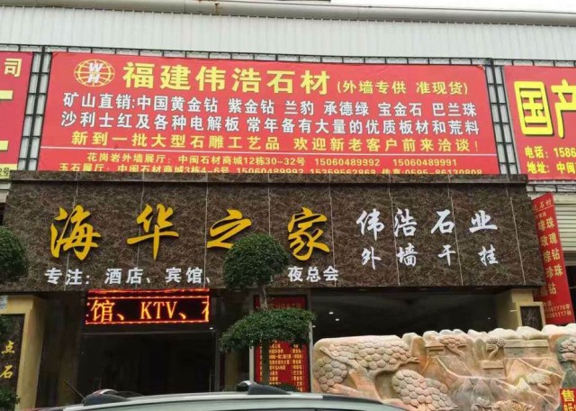 發(fā)布信息: 南安水頭偉浩石材(專注外墻 主營(yíng):電解黃金鉆 巴蘭珠。 寶金石。承德綠。紫金鉆。黑蝴蝶。 黃室啡。 金鉆麻。蘭豹。 莎麗士紅。 蝴蝶綠。新卡麥。紅鉆。木馬麗。 巴西維納金。 伊朗藍(lán)眼睛。 歡迎新老客戶前來(lái)洽談 qq978742559。 聯(lián)系電話 15060489991。 15260824789。 工廠地址:水頭樸里東大路 裕洲實(shí)業(yè)公司3號(hào)門