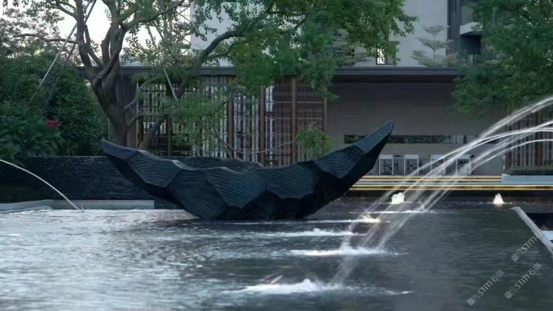 天涯文化石?古建--黑山石香蕉船景觀石