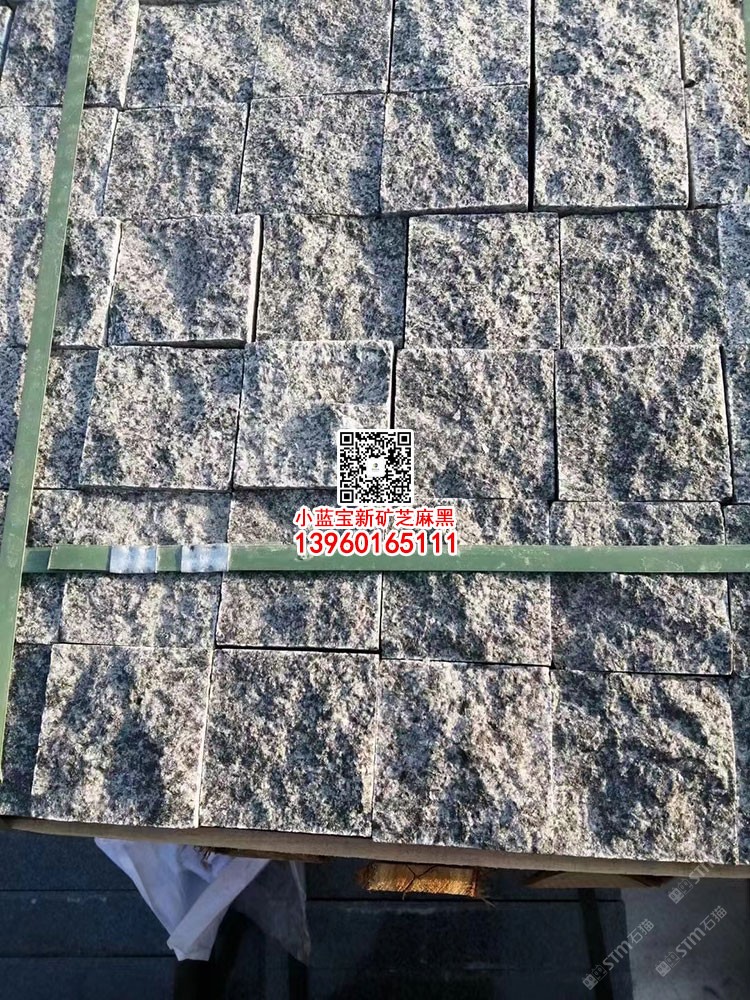 新礦芝麻黑自然面小方塊馬蹄石小藍寶新礦654廠家