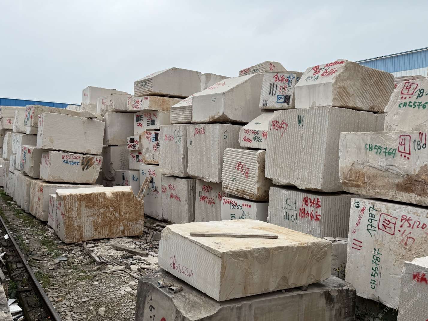 葡萄牙米黃 木化石荒料堆場