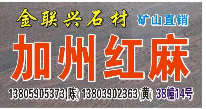 發(fā)布信息: 金聯(lián)興石業(yè)-加州紅麻 地址:建材市場(chǎng)38幢14號(hào) 13805905373、13805902363陳
