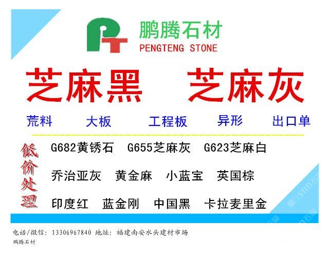 發(fā)布信息: 福建鵬騰石材有限公司-【金華石業(yè)】主營:芝麻黑654、芝麻灰655、黃銹石682、喬治亞灰641、黃金麻,等國內(nèi)外石材。 專業(yè)加工:墓碑料、臺(tái)板、薄板、大板、光板、工程板、異形、特大荒料。 電話:0596-8299871 手機(jī):13306967840 傳真:0596-8267840 http://www.pengtengstone.com 廠址:福建長泰林墩工業(yè)區(qū)
