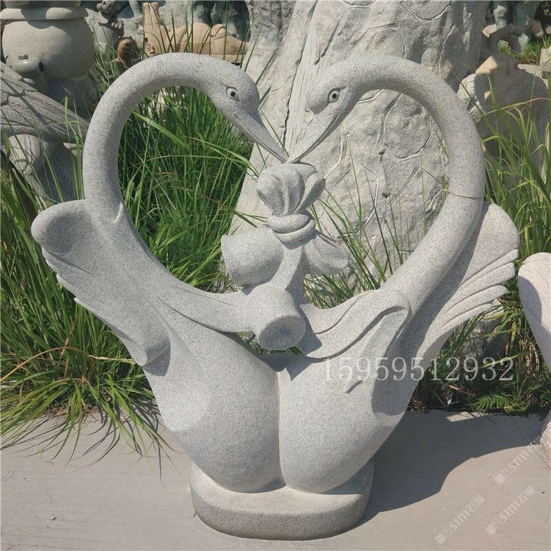 石雕天鵝 花崗巖石頭天鵝動物雕塑