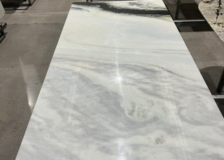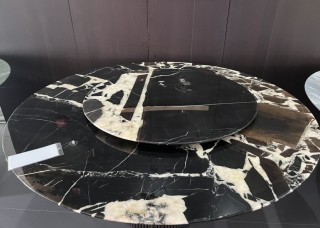 熊貓白奢石餐桌 天然水墨