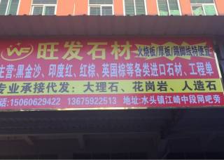 旺發(fā)石材主營產(chǎn)品:麥成金絲(人造石),黑金沙,黑金沙(中花),古典米黃,紫羅紅,金鉆,新莎安娜,G617(新礦),新安溪紅,G623,銀珠,銀珠3,新654,粗花654(荔枝面),新654(ZZ礦),浪花紅,新中國黑,水景企業(yè)地址:福建南安水頭海聯(lián)廣場附近