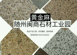 隨州石業(yè)主營產(chǎn)品:黃金麻1,卡基諾金,木蘭紅,芝麻灰,芝麻白,芝麻黑,隨州白麻,武漢白麻,隨州黃麻,小藍寶,湖北黃金鉆企業(yè)地址:湖北隨州隨縣吳山鎮(zhèn)閩商石材工業(yè)園